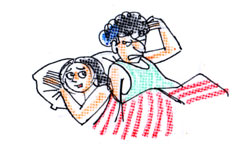 పెళ్ళాం: ఏం కాదు లెండి. విగ్గే కదా. తీసి ఎండలో పెట్టండి. పేలు చస్తాయ్! |