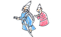 సేవకుడు: మహారాజా, కవచాన్ని ఛాతికి పెట్టుకోక వీపుకు తగిలించుకున్నారే?