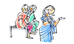 అత్త, మామలు : కోడలా, నువ్వు మా గురించి అసలు పట్టించుకోవు. ఆ పక్కింటి వాళ్ళ కోడలు పిల్లను చూడు. ఎన్ని సేవలు చేస్తుందో!