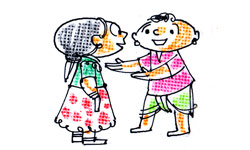 పక్కింటి బాలిక: "జో అచ్యుతానందా.. జో... జో .. ముకుందా.. " అని అమ్మ జోల పాడినా, నీకు నిద్ర పట్టలేదా?