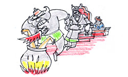 సేవకుడు : ఇక్కడ జరిగే కార్యక్రమాల ప్రత్యక్ష ప్రసారాలని, వాళ్ళు భోం చేస్తున్నప్పుడు, చూడలేకపోతున్నారట!! అందుకని ఆపి వేయమన్నారు, ఏలికా!!