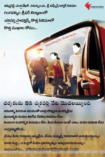 దీనికోసం బంపర్ ఆఫర్ అనీ, ఇంకోటనీ ఏమీ చెప్పడంలేదు జేడీ చక్రవర్తి. సింపుల్గా, ‘సినిమా అంటే పిచ్చి.. ఆ పిచ్చిలో మిమ్మల్నీ భాగస్వాముల్ని చేస్తున్నాం.. మీకు అవకాశం ఇవ్వడం కాదు, మీ టాలెంట్ని వాడుకునే అవకాశం మేం తీసుకుంటున్నాం.. మిమ్మల్ని రిక్వెస్ట్ చేస్తున్నాం.. మీలోని టాలెంట్ మాకు ఉపయోగపడేలా చేయండి..’ అని జేడీ ప్రకటన విడుదల చేశాడు.