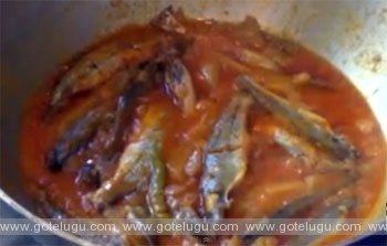 కావాల్సిన పదార్థాలు : ఉల్లిపాయలు, పచ్చి మిరపకాయలు, మామిడి కాయ ముక్కలు మరియు చిన్న చేపలు. ముందుగా బాణలి లో కొద్దిగా నూనె వేసుకొని అందులో ఉల్లిపాయలు, పచ్చి మిరపకాయలు వేసి వేయించాలి. ఉల్లిపాయలు బాగా వేగిన తరువాత కొద్దిగా అల్లం వెల్లుల్లి పేస్టు వేసుకోవాలి. ఇప్పుడు చేపల్ని వేసుకొని, తగినంత పసుపు, ఉప్పు , కారం వేసుకొని కొద్దిగా నీళ్ళు వేసుకోవాలి. తరువాత ఒకసారి కలుపుకొని మామిడి కాయ ముక్కల్ని వేసుకొని మూత పెట్టి ఉడికించాలి. ఒక పదిహేను నిమిషాల తరువాత ఒక సారి చూసి నీటి బుడగలు తగ్గి నూనె పైకి వచ్చాక ఘుమఘుమలాడే మామిడికాయలు - చిన్న చేపలు కూర రెడీ