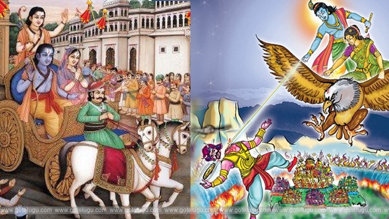 శ్రీరాముడు రావణుడిపై గెలిచిన వృత్తాంతం: రామాయణంలో, రావణుడిపై శ్రీరాముడి విజయాన్ని చీకటి మీద వెలుగుగా భావిస్తారు. ఈ కథ ధర్మం (న్యాయం, సత్యం) , అధర్మం (అన్యాయం, అబద్ధం)మీద గెలిచిన విజయాన్ని సూచిస్తుంది. రాముడు అరణ్యవాసం ముగించి అయోధ్యకు తిరిగి వచ్చిన రోజున ప్రజలు ఆయనకు స్వాగతం పలుకుతూ తమ ఇళ్ళను దీపాలతో అలంకరించారు. దీపావళి పండుగ ఈ విజయాన్ని పురస్కరించుకుని జరుపుకుంటారు.