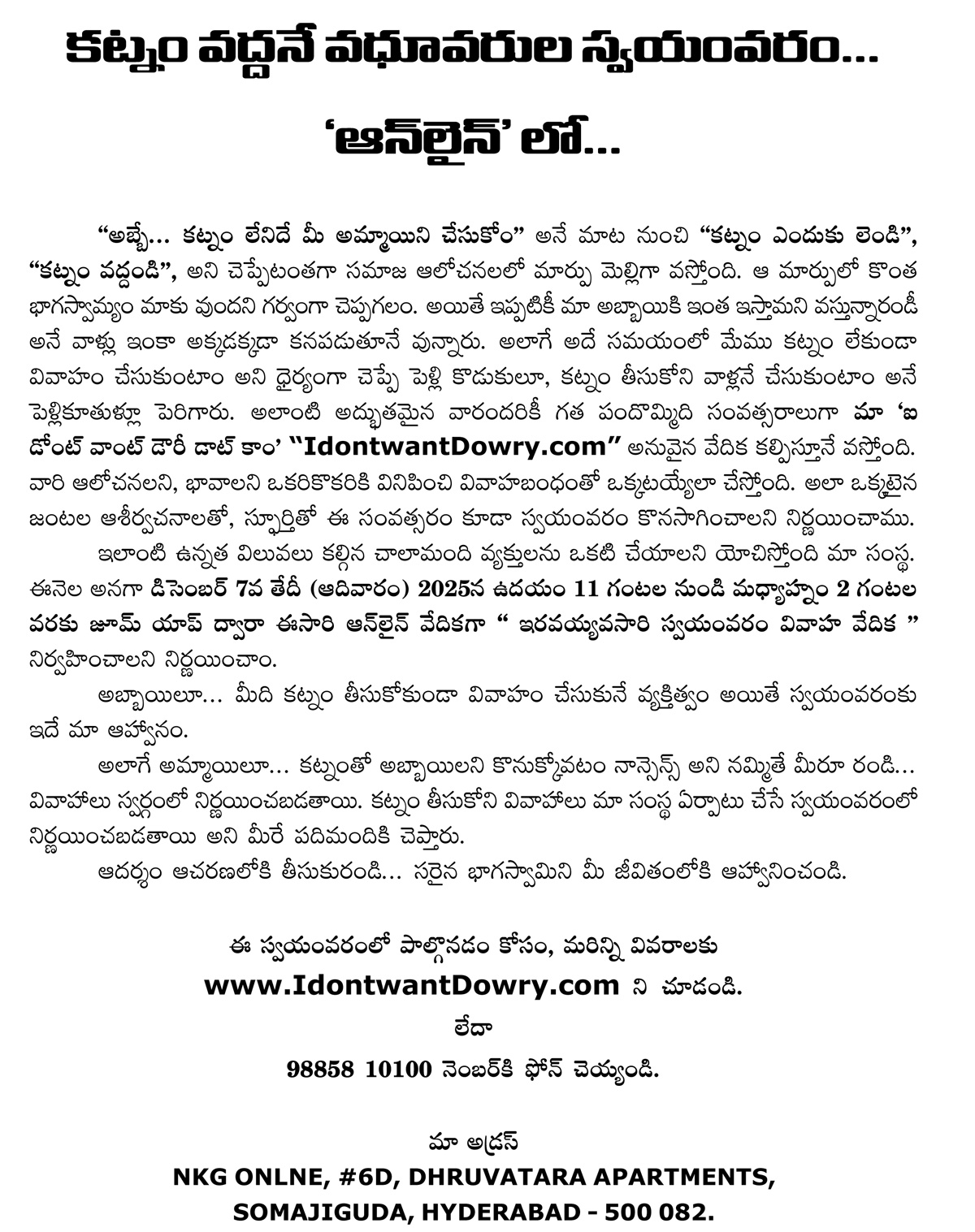 కట్నం వద్దనుకునే వధూవరుల స్వయంవరం -