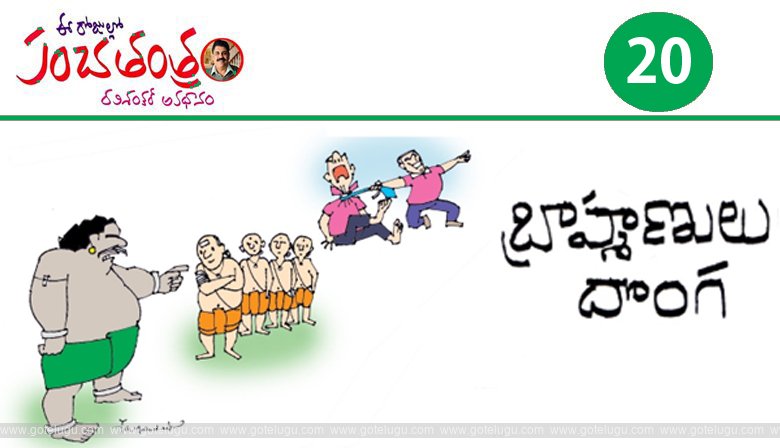ఐదుగురు బ్రాహ్మణులు ఒక పుణ్యక్షేత్రానికి వెళ్ళడానికి ప్రయాణం మొదలుపెట్టారు. వారికి ధనం చాలా అవసరం వచ్చింది. వారిలో ఒకరికి దొంగతనం చేయాలనే దుర్బుద్ధి పుట్టింది. ఆ నలుగురు బ్రాహ్మణులకు తెలియకుండానే, తన బట్టల్లోపల కొన్ని నగలు దాచుకున్నాడు. వారు అడవి గుండా వెళుతుండగా, ఒక గుంపు దొంగలు వారిని అడ్డగించారు. వారి దగ్గర దొరికినదంతా ఇచ్చేయమని అడిగారు.