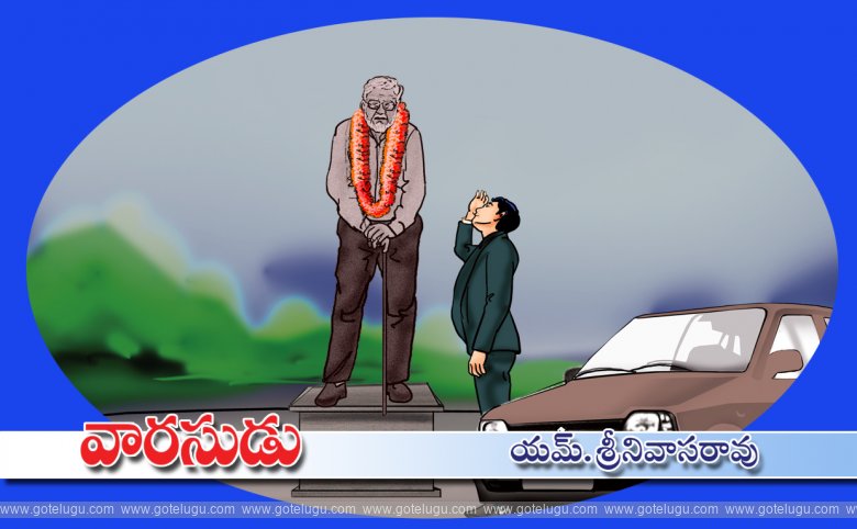 "తలలో నాల్కయై జనం గుండెలో నిలిచి పోయిన మహానుభావుడనీ పేదల పెన్నిధి అనీ,మంచితనానికి మారుపేరనీ, ఆపద్భాందవుడనీ ఇలా మా నాన్న గారి గురించి అందరూ గొప్పగా చెప్పుకుంటుంటే ఆ మహాను భావుడు మా నాన్న గారే నని మా వూరి ప్రజల ముందు గర్వంగా చెప్పుకోలేని దురద్రృష్టవంతుడిని .కారు వూరి పొలిమేర లోనే ఆపి మా వూరి వైపు నేనూ నా శ్రీమతి అడుగులు వేసాము. నెల రోజుల క్రితమే మా వూరినుండి ఈ కార్యక్రమానికి అవసరమైన నిధుల సేకరణ కోసం పట్టణం వచ్చిన మా వూరి యువకులను గేటు బయట నుండే నేను ఇంట్లో లేనని సెక్యూరిటీ గార్డు చేత చెప్పించి పొమ్మన్నాను. ఇప్పుడు ఇదంతా చూసాక నాలో నేనే పశ్చాత్తపడుతున్నాను. వారు మా నాన్న గారి శిలా విగ్రహ ఆవిష్కరణ కై పడుతున్న శ్రమను గుర్తించలేక పోయినందుకు నాలో నేనే సిగ్గు పడుతున్నాను