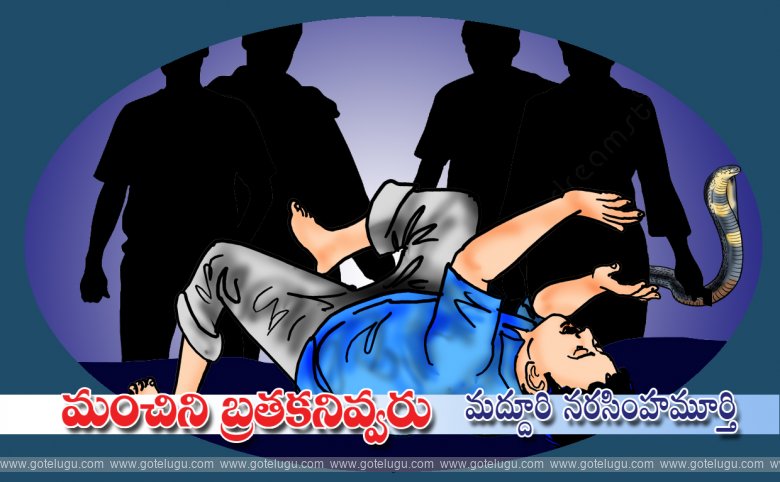 వికృతంగా నవ్వుకుంటూ తన పక్కనుంచి వెళ్తున్న నాలుగు మానవ క్రీనీడలు, అందులో ఒకరి చేతిలో ఉన్న పడగ విప్పిన పాము - మిణుకు మిణుకు మంటున్న మోటార్ సైకల్ వెలుతురులో లీలగా చూస్తున్న మదన్ కళ్ళు రెప్పలార్చకుండా నిలబడిపోగా, మంచిని బ్రతకనివ్వని మానవ రూపంలో ఉన్న ఆ నలుగురు రాక్షులు చేసిన అకృత్యానికి - అతని ఆఖరి ఊపిరి అప్పుడు పూర్తిగా ఆగిపోయింది.