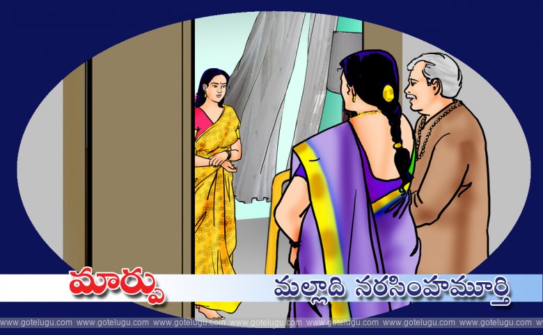 “ఏమండీ, ఎవరు వచ్చేరో చూడండి” అని పిలుస్తూ, పెద్దవారిని ఇంటి లోపలికి సాదరంగా ఆహ్వానించింది.